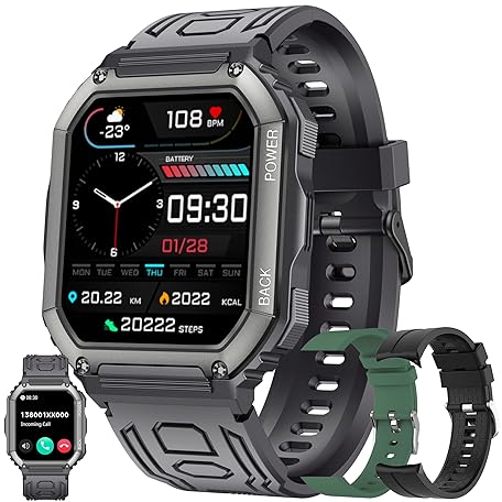 1.8 Inch AMOLED Men's Smart Watch with Bluetooth 5.2 Call/Dialing, Smartwatch Compatible with Samsung Huawei Xiaomi Android iOS Pedometer GPS Shared Watch 123 Sports Heart Rate Monitor (Black)