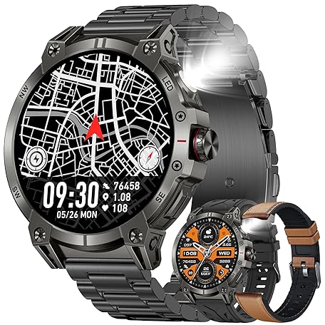 1.85 Inch AMOLED Men's Smart Watch with Bluetooth 5.2 Call, Smartwatch Compatible with Samsung Huawei Xiaomi Android iOS Pedometer GPS Shared Watch 123 Sports Heart Rate Monitor (Black)