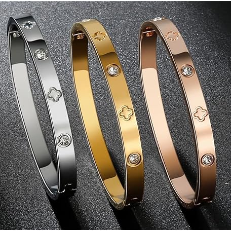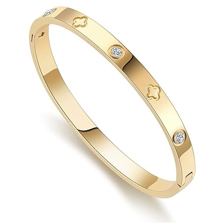 Sản phẩm 18k gold plated stainless steel Lucky Leaf Bracelet,Lucky leaf clover flower bangle cuff Hollow Buckle Bracelet for Women Luxury Zircon Bracelet (Gold) đang được bán với giá ưu đãi là $15.7723 tại nước Anh.