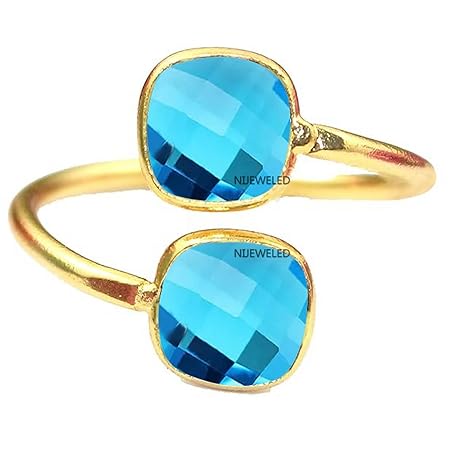 18K Yellow Gold Over 925 Sterling Silver Stylish Statement Ring for Women & Girl, Gemstone Dainty Ring, Fine Jewelry Christmas Gift (Adjustable upto Size 6 to Size 8, Blue Topaz)