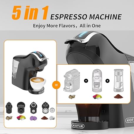 Thương hiệu KOTLIE là cái tên nổi tiếng được rất nhiều khách hàng trên thế giới chọn lựa. Với kiểu dáng đẹp mắt, sang trọng, sản phẩm 19 Bar 5in1 Multicapsule Espresso Coffee Machine for Dolce Gusto/Nespresso/LOR/MIO Capsule and Coffee Ground/ESE Coffee Pods EM-308A (BLACK-UK) là sự lựa chọn hoàn hảo nếu bạn đang tìm mua một món cho riêng mình.