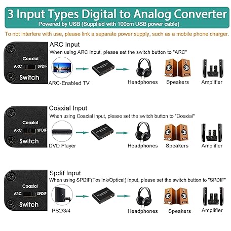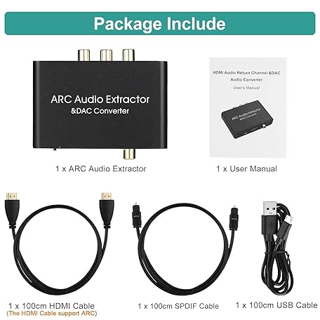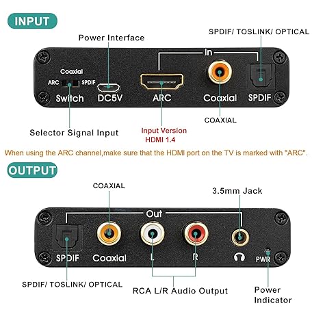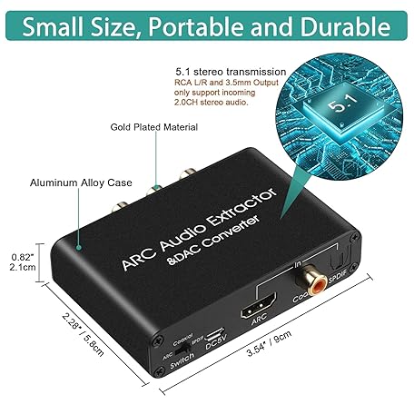 Thông tin sản phẩm 192KHz DAC Converter, Digital to Analogue L/R RCA Adapter, HDMI ARC Audio Extractor to SPDIF, Coaxial, 3.5mm, L/R, CEC Volume Adjustable (ARC-Converter)