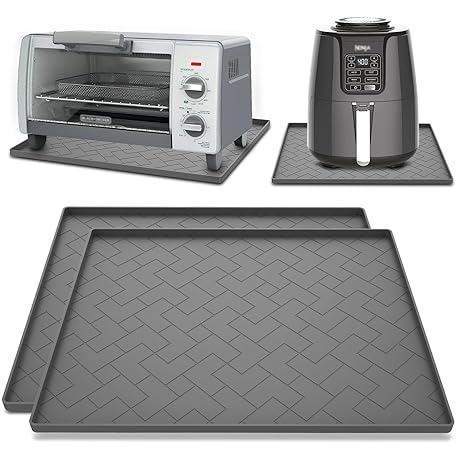 2 Pack Heat Resistant Mat for Air Fryer, 15''x18''x0.5'' - Perfect for Ninja, COSORI, Chefman and Most Air Fryers - Silicone, Rectangular, Grey