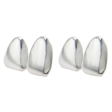 2 Pcs 18K Gold Plated Double Tooth Cap Hip Hop Teeth Grillz Vampire Fangs Grills Set for Men and Women Rapper Cosplay Costume, One Size, Brass, No Gemstone