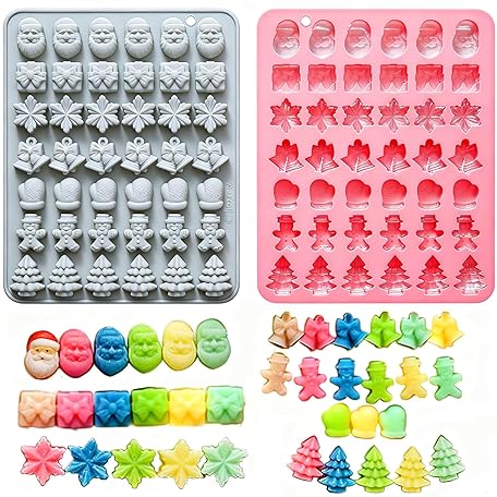 2 Pcs Christmas Snowflake Silicone Mold Chocolate Fondant Candy 42 Cavity 3D Mold Gummy Mold for Party Mousse Cake Baking Cupcake Topper, Jello, Dog Treats