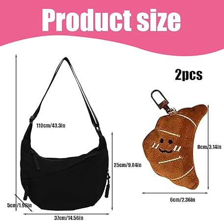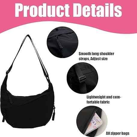 Thông tin sản phẩm 2-Piece Cross Body Bag Women, Black Bags Set, Crescent Sling Bag with Adjustable Strap, Lightweight Dumpling Bags for Travel, Work, and Daily Use