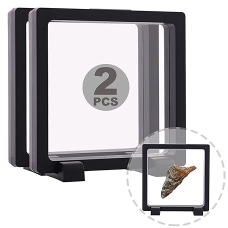 2 Set 4.3 Inch 3D Floating Display Frame Case for Jewelry, YITOU Challenge Coin Display Stands Case Holder for Fossil, Rock, Gemstones, Megladon Tooth, Specimens, Floating Frame Case