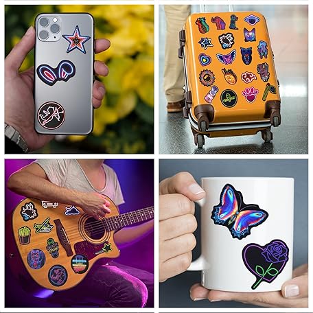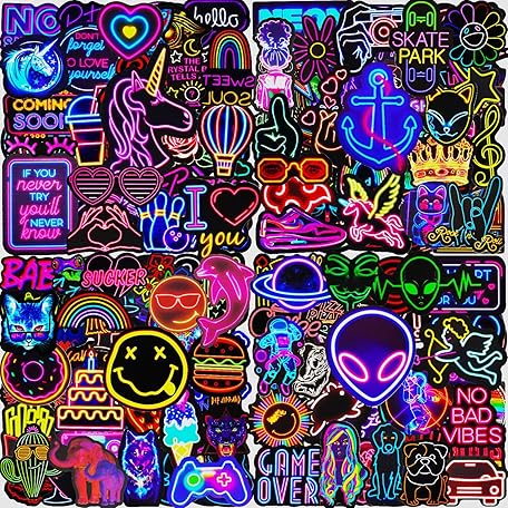 Thông tin sản phẩm 200 Pcs Cool Neon Stickers for Children Adults Teens, Teacher Reward Sticker Pack, Prizes for Kids, Waterproof Vinyl Stickers for Laptop Scrapbook Journal Skateboard Phone Guitar Suitcases Scooter etc