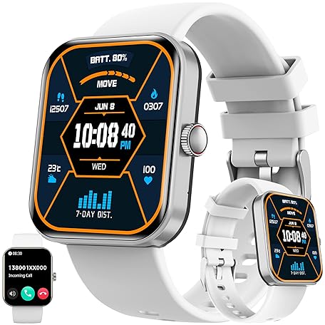 2.02 Inch AMOLED Men's Smart Watch with Bluetooth 5.2 Call, Smartwatch Compatible with Samsung Huawei Xiaomi Android iOS Pedometer GPS Shared Watch 123 Sports Heart Rate Monitor (Silver)