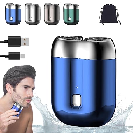 2024 New Upgrade Pocket Shaver USB Mini Shavers for Men, Rechargeable Waterproof Compact Electric Shaver, USB Rechargeable Mini Portable Electric Razor, Double Head Razor (Blue)