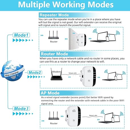 Thông tin sản phẩm 2025 Newest WiFi Extender, WiFi Booster, WiFi Repeater, Covers Up to 3000 Sq.ft and 45 Devices, Internet Booster - with Ethernet Port, Quick Setup, Home Wireless Signal Booster, UK plug (White)