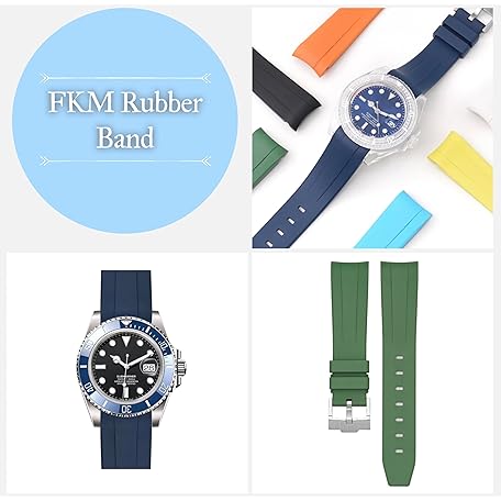 • 20mm FKM Rubber Band For Rolex Watches, Curved End 20mm Rubber Watch Band For Rolex Watches (Navy Blue, 20mm)