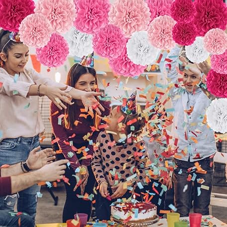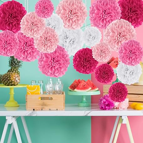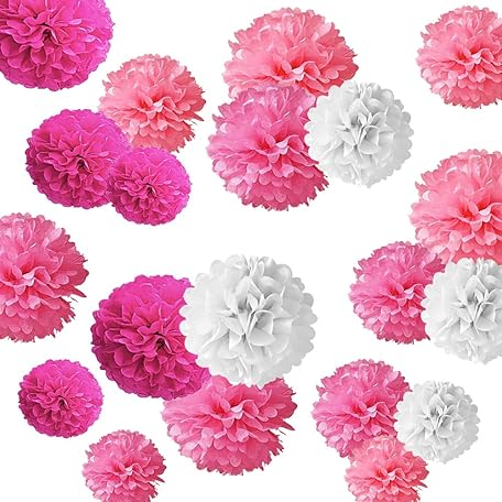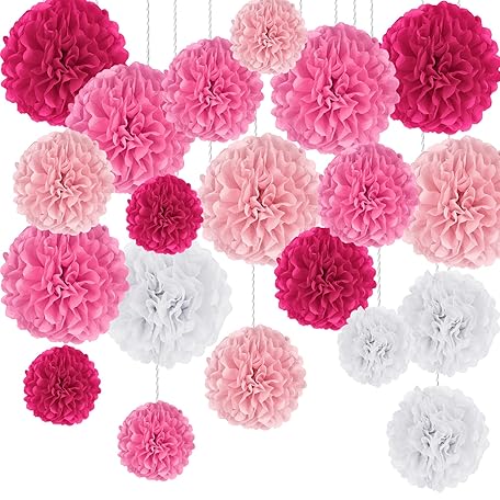 Thông tin sản phẩm 20Pcs Decorations Tissue Pom Poms Kit, Pink Tissue Paper Flowers Balls Ceiling Hanging Decorations for Birthday, Baby Shower, Graduation, Wedding, Engagement Party Decorations