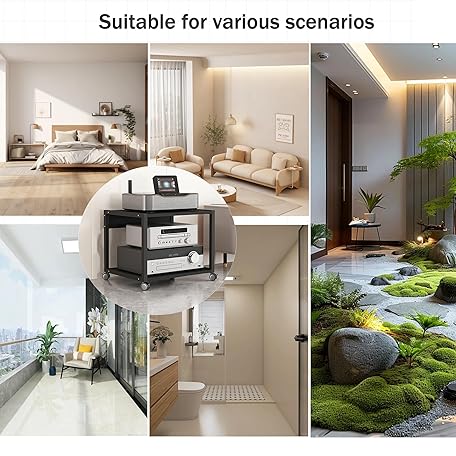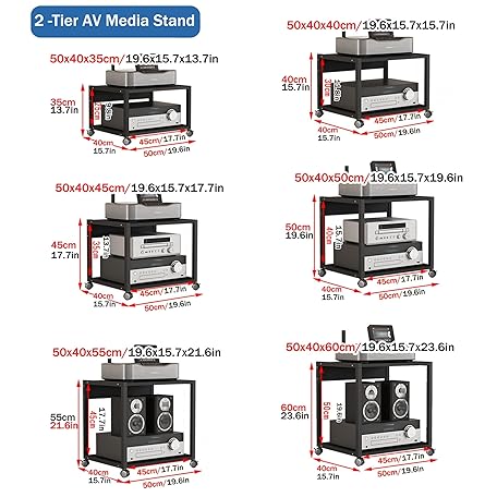 Thông tin sản phẩm 2/3 Tier Audio Stereo Rack, Router Game Studio Media Stand, Record Player Console Shelf, Small Corner TV Stand on Wheels, Perfect for Gaming & Living Room Entertainment Center (50x40x30cm)
