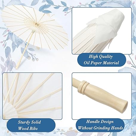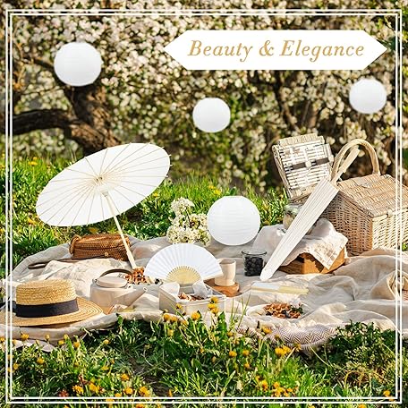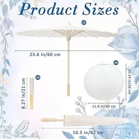 Thông tin sản phẩm 23.6" White Paper Umbrellas with 8 Inch Foldable Handheld Fans 12 Inch Paper Lanterns, Oiled Chinese Japanese Parasols, White Parasols Umbrellas and Fans Lanterns for DIY Painting, Wedding, Ceiling