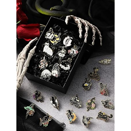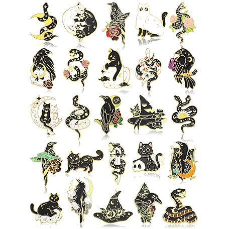 Sản phẩm 25 Pieces Black Gold Pins Set Backpack Brooches Gothic Pins Crow Snake Cat Button Badges Cool Horror Brooches Cute Aesthetic Badges for Clothing Bags Lapel Jackets DIY Decoration đang được bán với giá ưu đãi là $29.9314 tại nước Anh.