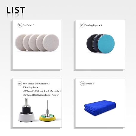 Thông tin sản phẩm 2Inch Car Felt Polishing Buffing Pad, 8pcs Polishing Sanding Discs, Felt Polishing Wheel with Towel, 3mm Shank Backing Pad for Rotary Tools to Polish Glass and Metal (2 Inch Sets)