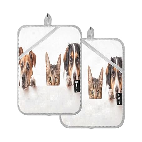 2Pcs A Group Of Silly and Cute Cats and Dogs Pot Holder Set with Pocket for Kitchen,Heat Resistant Potholder Kitchen Oven Mitts Hot Pads Trivet for Baking Cooking 7''x9''