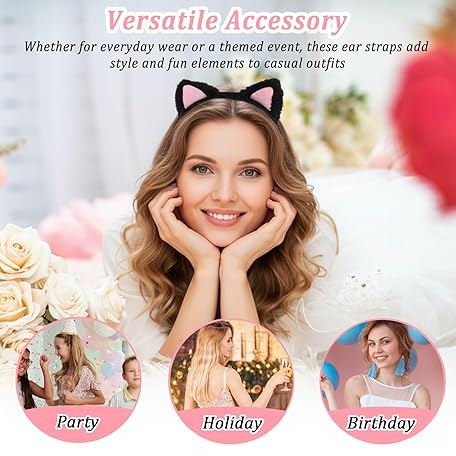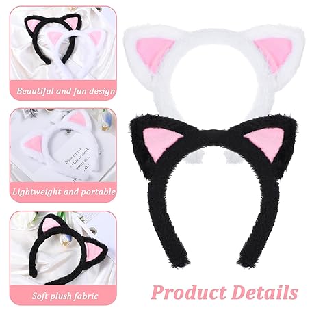 Thông tin sản phẩm 2PCS Cat Ears Headband, Black & White Cute Soft Washing Face Kitten Makeup Headband, Pink Inner Ears Plush Fuzzy Hairband Accessories for Mask Skincare Spa Yoga Adults Kids Halloween Parties Cosplay