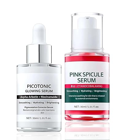 2PCS Cyano Pink Spicule Serum + Picotonic Glowing Ampoule Duo Set -Skincare for Pore & Blemish Care - Refines Pores, Smooths Skin