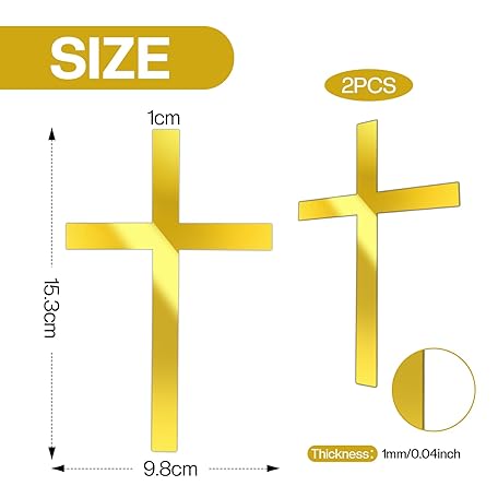 Thông tin sản phẩm 2PCS Gold Cross Cake Topper, 9.8 * 15.3cm Each, Christening Cake Decorations, Baptism decorations, First Holy Communion Cake Topper-Gold
