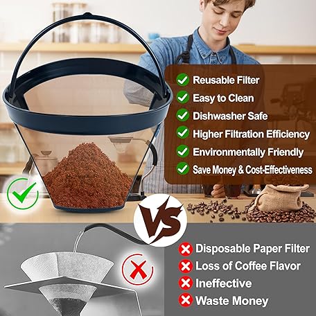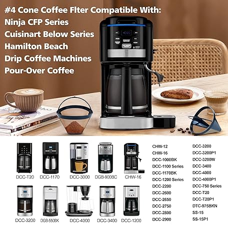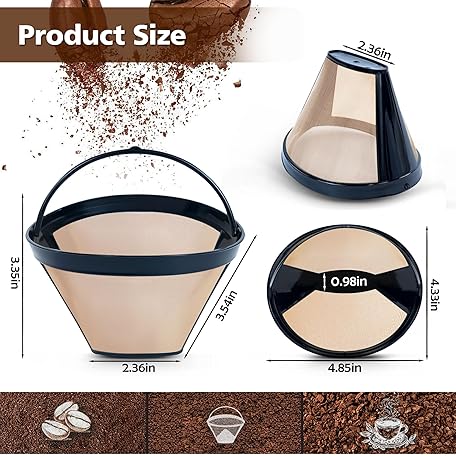 Thông tin sản phẩm 2Pcs Reusable No.4 Cone Coffee Maker Filters for Ninja Bar Brewer, Replacement Coffee Basket Filters, #4 Cone Permanent Coffee Filters Compatible with Ninja Coffee Maker