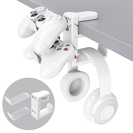 Sản phẩm 3-in-1 Headset&Controller Holder-Rotatable Gaming Accessories Headphone Holder with Clamp & Detachable Holder for Controller & Cable Organizer, PC Gaming Accessory Controller Headset Stand, White đang được bán với giá ưu đãi là $22.4431 tại nước Anh.