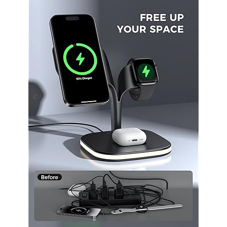 Thông tin sản phẩm 3 in 1 Wireless Charging Station for Apple Devices, MagSafe Wireless Charger Magnetic Charging for iPhone 17/Air/16/15/14/13/12 Series, AirPods Pro 4/3/2,Apple Watch Series/Ultra (with 20W PD Charger)