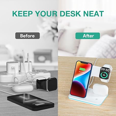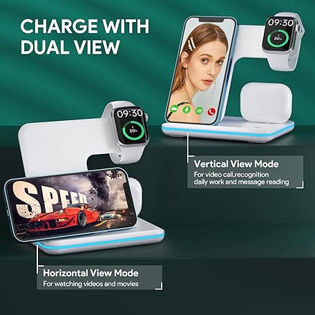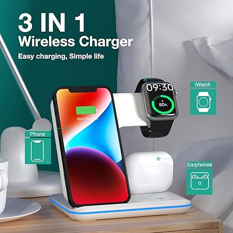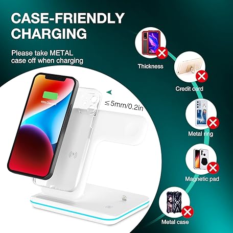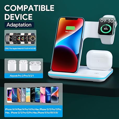 Thông tin sản phẩm 3 in 1 Wireless Charging Station, Wireless Charger Docking Station for iPhone 16/15/14/13/12/11/XR/XS/and Apple Watch 8/7/6/5/4/3/2/SE, Charging stand for AirPods 1/2/3/ Pro/Pro 2 with Lightning Port