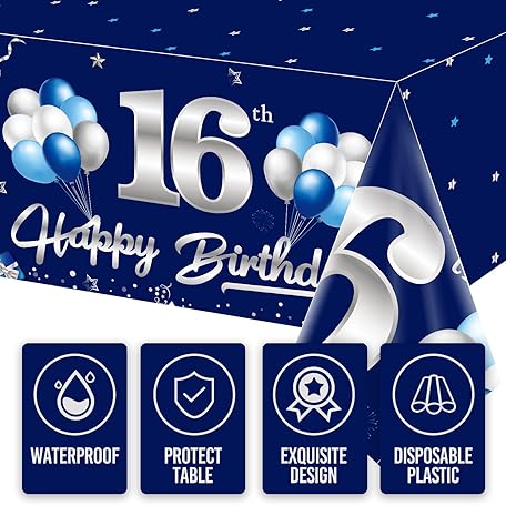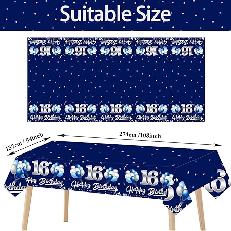 Thông tin sản phẩm 3 Pack Blue Silver 16th Birthday Tablecloth Decoration for Boy, Navy Blue Happy 16 Table Cover Party Supplies, Sixteen Years Old Birthday Disposable Rectangular Table Cloth for Indoor Outdoor