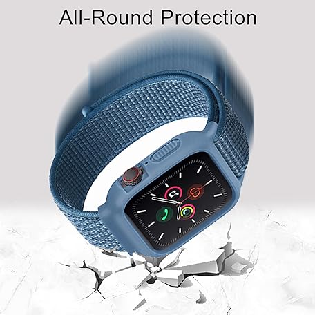 [3 Pack] Nylon Bands with Case Compatible with Kids Apple Watch Band 38mm 40mm 41mm & 42mm 44mm 45mm,Soft TPU Case with Breathable Velcro Strap for iWatch Series 9/8/7/6/5/4/3/SE/SE2,for Kids Women