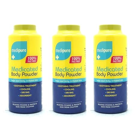 3 x Medipure Medicated Body Powder - Helps Cool Itchy, Irritated Skin 100% TALC FREE (200g) - Swan household ®