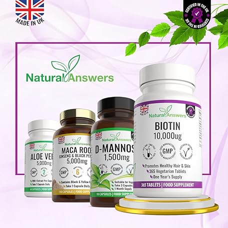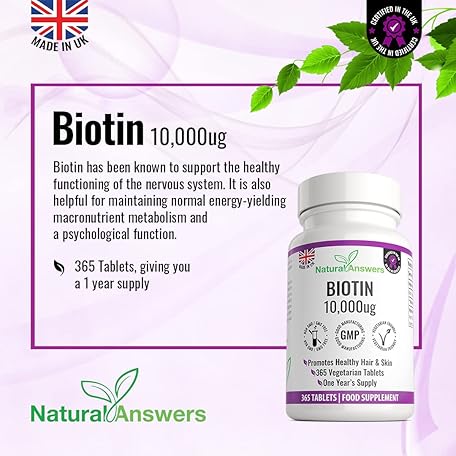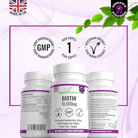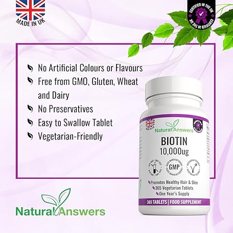 Thương hiệu Natural Answers là cái tên nổi tiếng được rất nhiều khách hàng trên thế giới chọn lựa. Với kiểu dáng đẹp mắt, sang trọng, sản phẩm 365 Biotin Hair Growth Tablets (1 Years Supply) - Vegetarian 10,000UG Vitamin B7 Supplements for Men and Women, Healthy Hair, Skin & Nails Support - UK Manufactured là sự lựa chọn hoàn hảo nếu bạn đang tìm mua một món cho riêng mình.