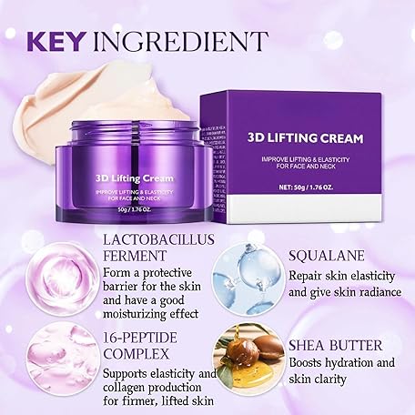 Thông tin sản phẩm 3D Lifting Cream - Instant Face Tightening Cream for Women, Skin Tightening Creamfor Face & Neck, Anti-Aging Firming Moisturiser with Peptide & Squalane, Improve Lifting, Elasticity & Wrinkles, 50g