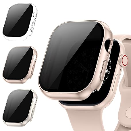 [3Pack] Kamita Privacy Case for Apple Watch Series 11/Series 10 42mm with Anti-Spy Tempered Glass Screen Protector, Hard PC Bumper Case Protective Cover for Women Men (Clear+Starlight+Rosegold)