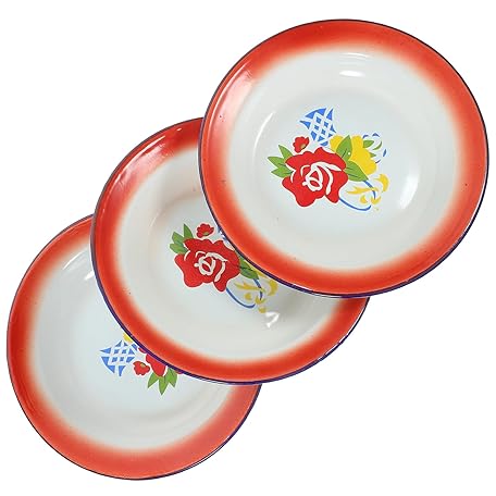 3Pcs 20Cm Vintage Style Enamelware Plates Set, Retro Floral Pattern Round Serving Dishes for Salad, Snacks, BBQ and Hotpot, Chinese Style Tableware