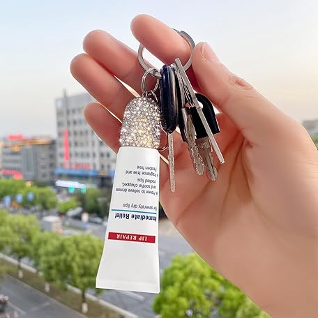 Sản phẩm 3pcs Lip Balm Keychain Holder Bling Lip Gloss Key Chain Cap Portable Lipgloss Case đang được bán với giá ưu đãi là $21.5493 tại nước Anh.