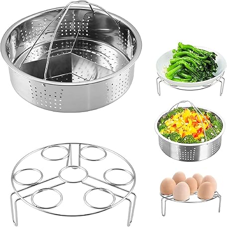 3Pcs Steamer Basket Rack Set Stainless Steel Trio Separator Set Durable Pressure Cooker Accessories Steam Basket with Egg Steamer Rack Divider for Pressure Cooker Instant Pot