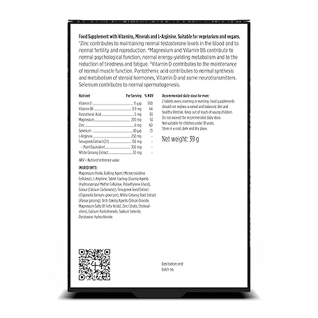 Thông tin sản phẩm 4 HIM TestoBalance - Testosterone Supplements for Men - with Zinc + Magnesium + B6 Complex, L-Arginine, Ginseng & Fenugreek - Energy & Muscle Function - 60 Vegan Tablets