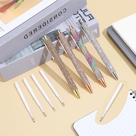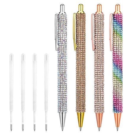 Sản phẩm 4 Pcs Bling Rhinestone Sparkly Pens for Women with 4 Pcs Black Ink Refills Cute Fancy Pens Diamond Crystal Glitter Ballpoint Office Supplies Beautiful Gifts for Girl Office School Christmas Graduation đang được bán với giá ưu đãi là $9.2105 tại nước Anh.