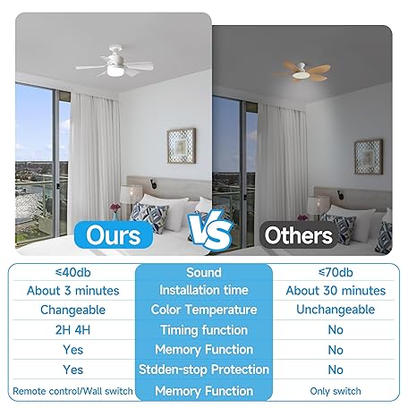Thông tin sản phẩm 40cm E27 Ceiling Fans with Lights and Remote Control, 3 Speeds 3 Color Temperature Ceiling Fan Light Dimmable, 400r/Min 3000-6500k Quiet Ceiling Fan with 5 Blades, for Bedroom Living Room Home (white)