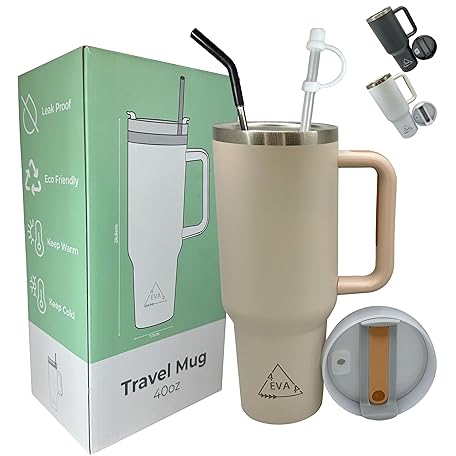 • 4EVA4 1182ml Travel Mug 40oz Tumbler with Straw and Lid, Stainless Steel Double Wall Vacuum Insulated Coffee Mug for Hot and Cold Coffee, Travel Mug with Handle, Coffee Mug for On The Go (Pink)