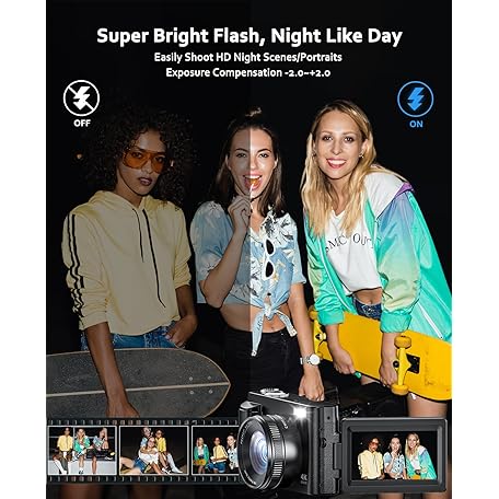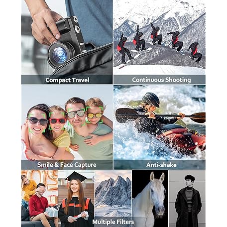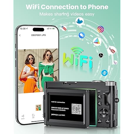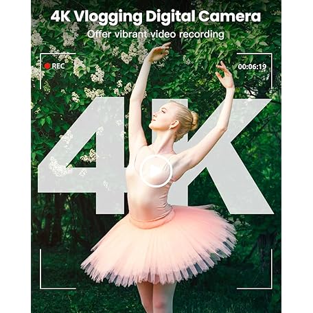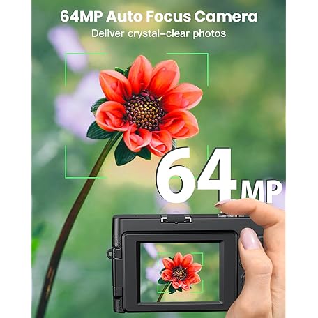 Thông tin sản phẩm 4K 64MP Digital Camera with WiFi, 180° Flip Screen, 16X Digital Zoom, Vlogging Camera for YouTube with Flash, Compact Camera with 32GB SD Card, 2 Batteries