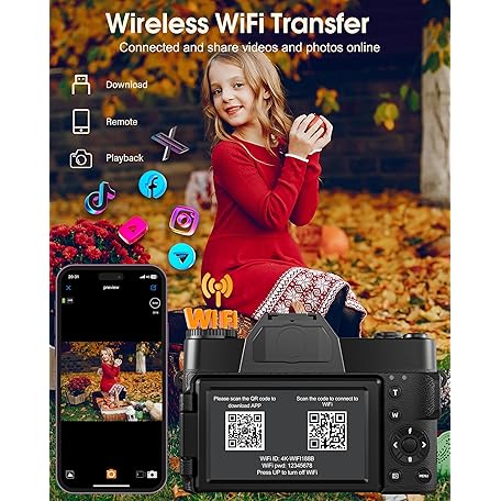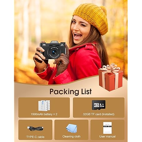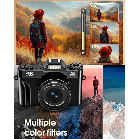 Thông tin sản phẩm 4K 75MP Digital Camera with WiFi, 3" 180° Flip Screen, 16X Digital Zoom Autofocus Vlogging Camera for YouTube, Compact Camera with 32GB SD Card & 2x1500mAh Batteries for Travel & Beginners