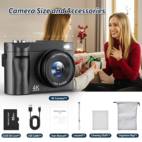 Sản phẩm 4K Digital Camera 50MP Autofocus Vlogging Camera 2.8' 180° Flip Screen with 16X Digital Zoom Compact Digital Camera with 32GB Card for Teenagers Beginners đang được bán với giá ưu đãi là $56.8762 tại nước Anh.