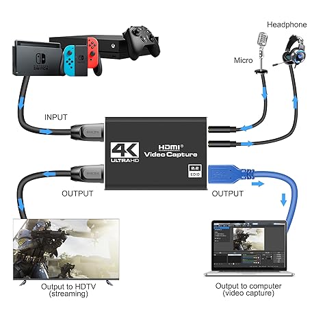 Sản phẩm 4K HDMI Video Capture Card, Cam Link Game Capture Card Nintendo Switch, 1080P 60fps Audio Video USB Capture Card for Streaming/Gaming/Video Conference/Teaching, Works for PS4/PS5/Xbox/Wii U/3ds/Obs đang được bán với giá ưu đãi là $44.1559 tại nước Anh.