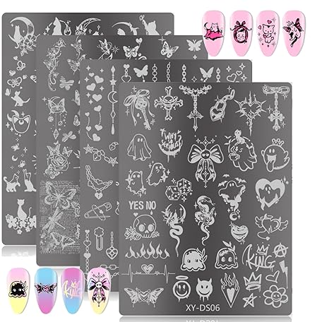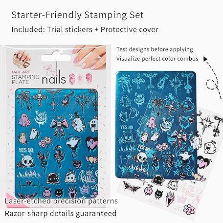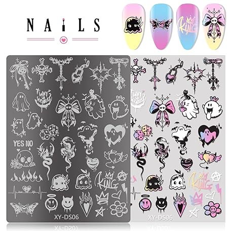 Sản phẩm 4Pcs Gothic Cute Nail Stamping Plate Set - Dark Kawaii Nail Art Templates, Stainless Steel Spooky Sweet Nail Stamp Plates with Skull & Lace Patterns for Halloween DIY Manicure Printing Tools đang được bán với giá ưu đãi là $22.8246 tại nước Anh.