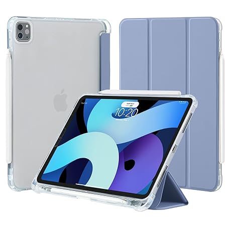 4UBonLife Case for iPad Pro 11 inch 2022/2021/2020/2018 (4th/3rd/2nd/1st Generation) with Pencil Holder, Slim Stand Case Soft TPU Back Cover, Support 2nd Pencil Wireless Charging, Lavender Grey