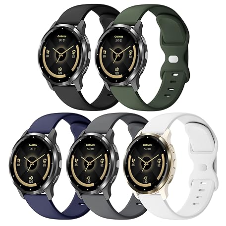 5 Pack 18mm Silicone Watch Band Compatible with Garmin Vivoactive 4S/Vivomove 3S/Venu 3S 41mm/Venu 2S/Forerunner 255S/265S, Quick Release Soft Sport Straps for Women Men