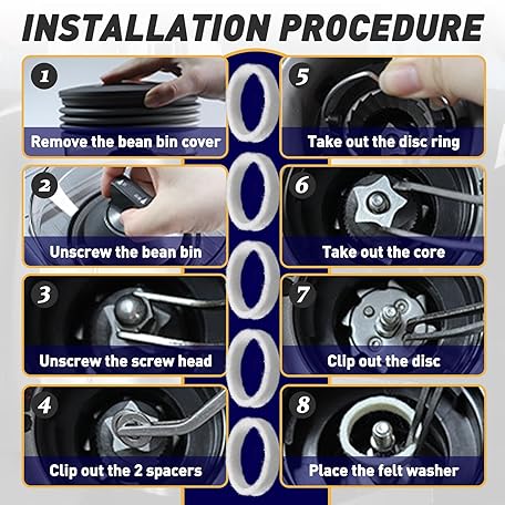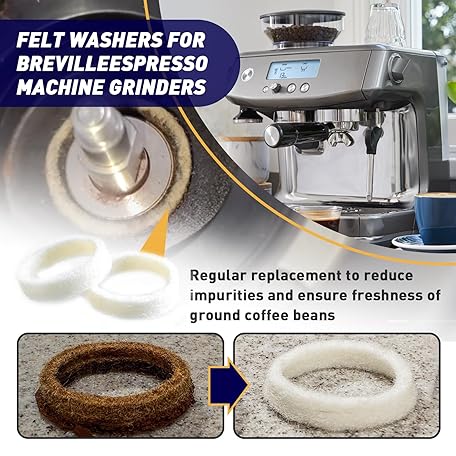 Thông tin sản phẩm 5 Pcs Round Soft Felt Washer Replacement for Breville Espresso Machine Grinders - Compatible withBES870, BES878, BES880, BES980, BCG820 Models - Shim Kit Included